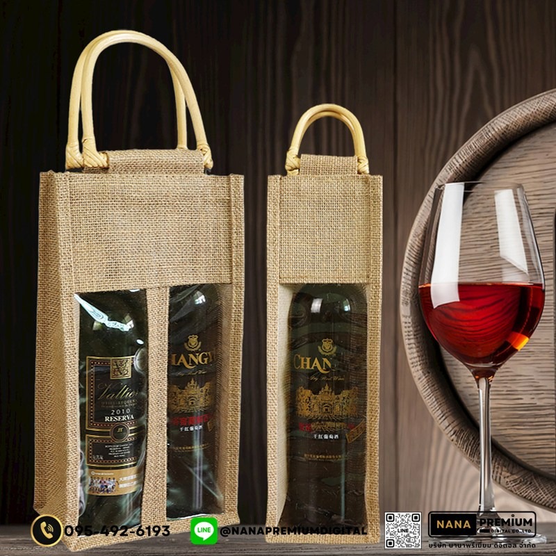 รับผลิตกระเป๋าใส่ไวน์ กระเป๋าใส่ขวดไวน์ ของขวัญไวน์ ผ้ากระสอบ รับสกรีนโลโก้กระเป๋า กระเป๋าผ้าปอ รับสกรีนโลโก้กระเป๋ารักษ์โลก กระเป๋าทูโทน กระเป๋าผ้าลินินขนาดใหญ่ กระเป๋าผ้ามูจิ